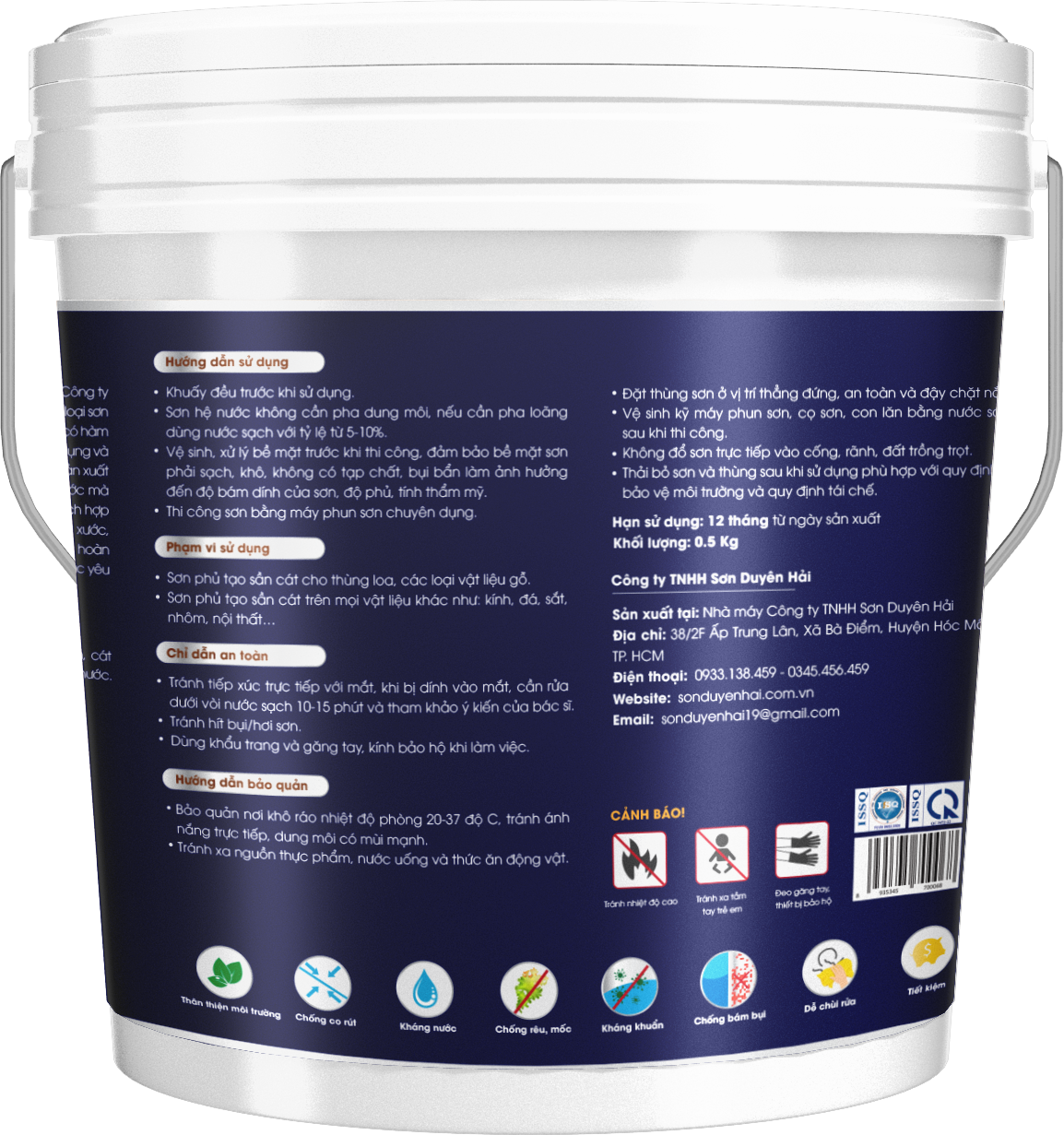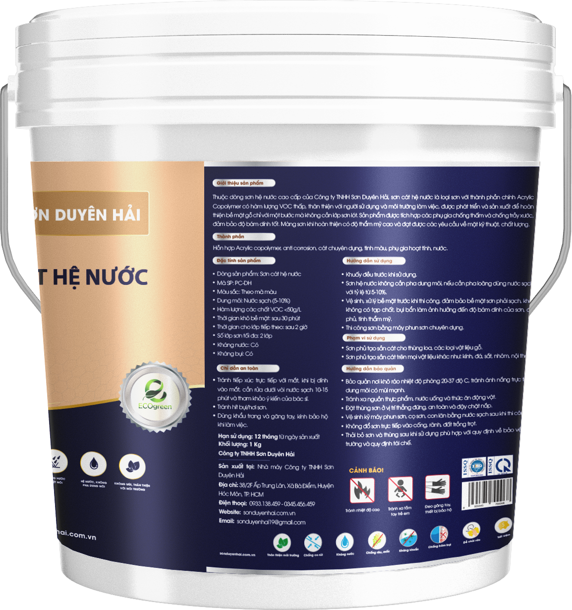 - Thuộc dòng sơn hệ nước cao cấp của Công ty TNHH Sơn Duyên Hải, Sơn Cát hệ nước là loại sơn với thành phần chính là Acrylic copolymer có hàm lượng VOC thấp, thân thiện với người sử dụng và môi trường làm việc, được phát triển và sản xuất để hoàn thiện bề mặt gỗ chỉ với một bước mà không cần lớp sơn Lót. Sản phẩm được tích hợp các phụ gia chống thấm và chống trầy xước, đảm bảo độ bám dính tốt. Màng sơn khi hoàn thiện có độ thẩm mỹ cao và đạt được các yêu cầu về mặt kỹ thuật, chất lượng.
